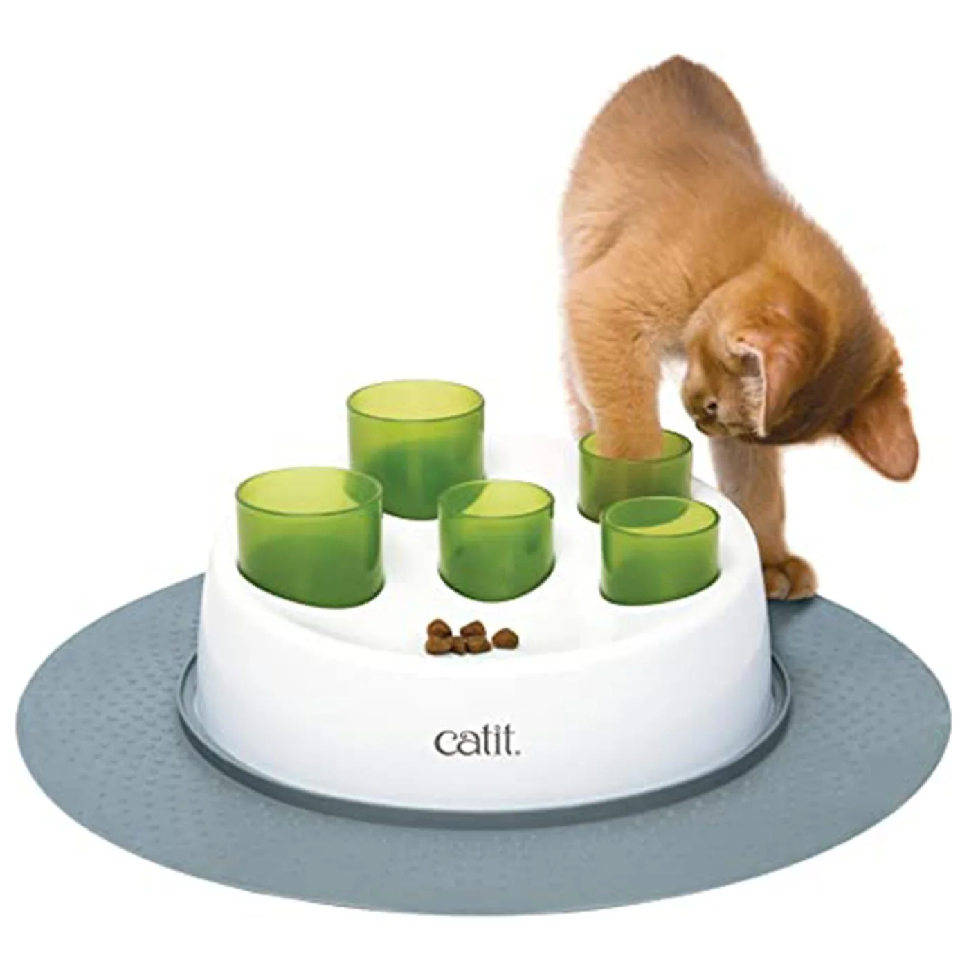 At first, he wasn’t skilled with his paws, so I used a simple tissue box filled with kibble to help him practice before moving on to a more advanced feeder. Over time, he built the skill and the puzzle feeder became a reliable solution.