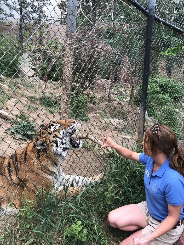 With positive reinforcement training, I’ve taught a grizzly bear to present his back for a voluntary mass biopsy, a mountain lion to lay still on his back for abdominal x-rays, a tiger to open his mouth for dental checks, dogs to give me their paw for nail trims, domestic cats to voluntarily crate and let the door close, a leopard to roll over, and so on, and so on. The possibilities are endless and no species is excluded from the art and science of training.
